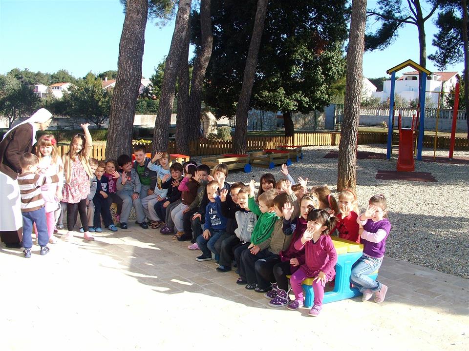 Durch Sponsoring erhielt der Kindergarten des Karmeliterordens in Bibinje eine Außenspielanlage und eine Garderobenwand.